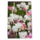 Tulipas brancas e rosadas brilhantes em um dia ensolarado. A foto foi tirada em junho de 2022. O pôster é adequado para design de interiores.