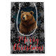 Sacola Para Presentes Média Urso de Natal retrógrado paisagem nevada
