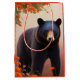Sacola Para Presentes Média Urso Negro em flores laranja