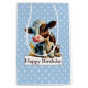 Sacola Para Presentes Média Vaca Feliz Aniversário Daisy Blue