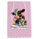 Sacola Para Presentes Média Vaca Feliz Aniversário Daisy Pink
