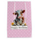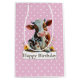 Sacola Para Presentes Média Vaca Feliz Aniversário Rosa Bonito