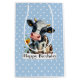 Sacola Para Presentes Média Vaca Leiteira Feliz Aniversário Azul