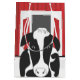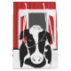 Uma ilustração gráfica de uma vaca com um celeiro num saco-presente.