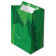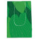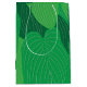 Green Leaves Medium Gift Bag, padrão de presença, projetado por Nisha Prabhu. Esse saco-presente de médio porte apresenta um padrão de folhas verdes encantador, perfeito para dar vários itens. O padrão das folhas verdes adiciona um toque de natureza e elegância a este saco-presente, fazer-o adequado para qualquer ocasião, incluindo aniversários, ou até casamentos. Com seu encantador padrão verde de folhas, esta bolsa de presentes certamente impressionará e adicionará um toque extra de sofisticação a qualquer experiência de doação.