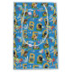 Letras maiúsculas A B C D E F G H I J...animais domésticos e ferramentas escolares contra um padrão de repetição do céu azul