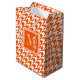 Sacola Para Presentes Média White Houndstooth Laranja | Monograma Moderno