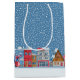 Sacola Para Presentes Média Wonderland Snowy Cabin Blue Gift Bag