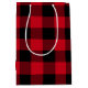 Sacola Para Presentes Média Xadrez de Buffalo Vermelho e Chevron Negro