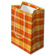 Bonito tons de laranja, ouro e marrom em um padrão de xadrez.