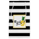 Adicione esse toque especial aos seus favoritos para festas de luau com o abacaxi amarelo elegante Obrigado Por Favor Gift Bag projetado pela Enchantfancy Design Company. Este saco apresenta um abacaxi na moda, acentuado por listras pretas e brancas. A coordenação de produtos de luau está disponível para ajudá-lo a vincular o tema do abacaxi.