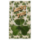 Saco positivo do presente, coberto com um teste padrão de trevos diagonalmente alinhados. A parte anterior do saco é decorada com um grandes trevo e texto "afortunados você!".