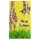 Girafa branca com óculos e margarida branca na boca, em bolinhas brancas com fundo amarelo para aniversário geral