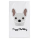 Este saco branco de presente de aniversário do Bulldog francês faz a adição perfeita ao presente de qualquer amante frenchido. A design apresenta um rosto bonito e branco do Bulldog Francês com espaço para adicionar sua própria redação na frente e atrás. A cor do texto e o estilo da fonte podem ser alterados usando-se a opção personalizá-lo. Itens correspondentes disponíveis.