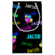 Buquê colorido de balão a preto com nome personalizado. O fundo preto pode ser editado. O nome pode ser alterado.