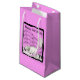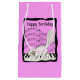 Este saco de presentes é rosa claro com um gato branco sorridente caminhando sobre as teclas do piano em quadro preto com pontos brancos e bares de notas de música em folha preta. Personalize o texto de aniversário feliz com o modelo.