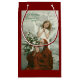 A imagem de uma adorável anjo e Papais noeis rezando, é apresentada em ambos os lados desta bolsa de presentes para o Natal. Com a mensagem de ambos os lados desta mala, "Um Feliz Natal", torna esta uma maneira bonito de dar presentes à família e aos amigos para as férias!