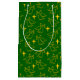 Esta bolsa de presentes tem uma design de Natal de anjos e estrelas espalhados sobre a design num fundo verde.