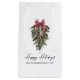 Moderna Caligrafia Elegante Tinta Script Aquarela Pinheiros Inverno Verdor com Laço de Fita Vermelha Burgundy Enfeites de Natal, Pinhas e Frutas de Azevinho Feliz Natal Saco de Presente