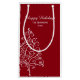 Personalize, date e encha as bolsas festivas do presente da árvore do vermelho e do White Christmas boas festas com seu presente para amigos ou família. Este presente invernal elegante e feito sob encomenda ensaca a característica um design intrincado da árvore do White Christmas com um fundo do vermelho rico.