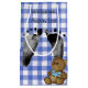 Gingham azul com pegadas de bebês e ursinho de pelúcia para recém-nascido.