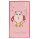 Esta bolsa de presente incrível apresenta um desenho fofo de uma coruja rosa com olhos sonolentos, um bico aberto largo e penas fofinhas fofinhas. A coruja está segurando um balão cor-de-rosa. Há um bonito texto cor-de-rosa dentro no balão que diz, "Menina". Este é o presente perfeito para celebrar uma menina recém-nascida. Há texto personalizável na frente deste saco-presente para que você possa personalizá-lo com uma mensagem de sua escolha.