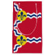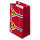 Saco de papel com a bandeira da cidade de St Louis; bandeira vermelha com as ondas brancas e do azul e flor de lis azul no círculo amarelo