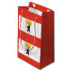 Saco de papel com bandeira variante de Berlim, bandeira estatal com faixas horizontais de vermelho e branco, com ilustração de um escudo dentro de urso preto com uma coroa