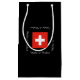 Bandeira suíça simples elegante contra um fundo preto básico. A cor preta do fundo pode ser mudada à cor de sua escolha.
