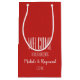Pequenos sacos brilhantes de presentes VERMELHO para embalar o presente de boas-vindas dos seus convidados para a sua recepção de casamento ou janto de ensaio ou qualquer outro evento especial, basta mudar o texto. Todas as fontes, cores de fonte e texto podem ser alterados. Você pode fazer a bolsa qualquer cor. (1) CLIQUE na ferramenta PERSONALIZAR (2) À esquerda, em camadas, clique em Fundo: Imagens e Texto (3) Clique em Cor de Fundo (4) À direita, escolha entre nossas cores ou clique no link Mostrar Seletor de Cores e selecione uma cor ou digite o código hexadecimal de sua cor. (4) Clique em Concluído. Mede 5 pol de largura x 3 pol x 8,5 pol de altura