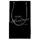Add an elegant touch to your Christmas gifts with this modern, minimalist gift bag featuring the greeting, Merry Christmas, in a combination of a classic serif font and a festive handwritten script, with your personalized family name below in a classic serif font.