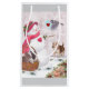 Um bonitão adormecido com um chapéu vermelho e um cachecol em meio a uma cena de neve, segurando uma cesta com dois coelhos. Um pássaro voa perto segurando um envelope com um coração, enquanto um filhote olha para eles ansiosamente. Saco de presentes festivos de férias por judithchengart