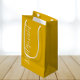 Apresente os presentes da sua dama de noiva com este pequeno saco de presente que combina com o seu esquema de cor festa de casamento de amarelo ouro, juntamente com um guião branco e estilizado que lê, "Bridesmaid".