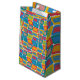Este saco de presentes tem um design moderno do século médio de cores brilhantes que faz retângulos arredondados com outros retângulos dentro formados por uma coleção de linhas.