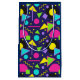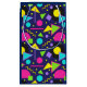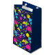 Este saco-presente apresenta formas geométricas em cores vivas e vivas num fundo azul marinho profundo. Está disponível em 4 tamanhos diferentes e tem uma vibração retrorreflectora que adoramos!