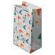Esta bolsa de presentes tem um design atômico moderno do século médio de formas de bumerangue, antenas e estereótipos em cor de laranja.