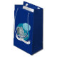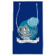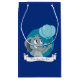 Design personalizado com ilustração de pequenos elefantes bonitos segurando balões azuis em círculo azul sobre fundo azul; design para crianças por Maxi Harmony; com modelo de texto personalizável para seu nome ou mensagem