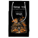 Um obrigado de Halloween / Aniversário, sua bolsa de presentes com uma ilustração legal e assustadora de uma casa assombrada de madeira. Cercados por grandes abóboras laranja e árvores com folhas laranja. Janelas com luzes laranja adicionam um brilho agradável. Design de Halloween divertido.