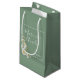 Saco de presentes de casamento bonito apresenta cor d'água canto branco sobre fundo verde basilar com blocos de texto personalizáveis brancos em fontes modernas
