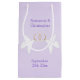 A bolsa de presente de casamento faz design. Personalize esta bolsa de presente de favor de casamento colorida lilás com seus detalhes de casamento. Se precisar de ajuda para personalizar, entre em contato conosco através do link desta página. Doves design lilac colorido de casamento personalizado bolsa de presente