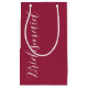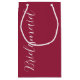 Apresente os presentes da sua dama de noiva com esta pequena bolsa de presente que combina com o seu esquema de cor festa de casamento de uma cor vermelha de vinho, juntamente com uma escrita branca e estilizada que diz, "Bridesmaid".
