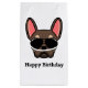 Economize tempo embrulhando presentes de aniversário com esta bolsa de presente de buldogue francesa fofa. A design apresenta uma ilustração do rosto de buldogue francês, marrom e bronzeado, com espaço para adicionar sua própria redação na frente e no verso.