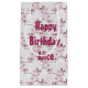 A cereja cor-de-rosa primavera floresce no galho com nome pessoal para o aniversário de qualquer um. O nome é editável ou pode ser excluído.