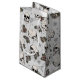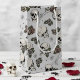 Desenhado à mão a tinta preta, este saco de presentes apresenta um lindo padrão de crânios, rosas e teias de aranha em tons de creme e de pelúcia, todos contra uma elegante cinza de luz.