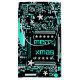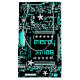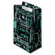 design com um fecho legal de um conselho de circuito de computador a preto, branco e azul com um toque festivo. Saco de presentes com um design personalizável para você personalizar com seu próprio texto, fotos e ideias. Imagem criada usando uma fotografia original e técnicas digitais.