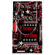 design com um fecho legal de um conselho de circuito de computador a preto, branco e vermelho com um toque festivo. Saco de presentes com um design personalizável para você personalizar com seu próprio texto, fotos e ideias. Imagem criada usando uma fotografia original e técnicas digitais.
