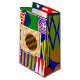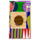 Este saco de presentes tem um design Bauhaus de formas e linhas fazer colagem em cores primárias e secundárias.