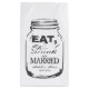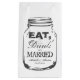 Vintage mason jar bote de casamento... Sacos de presente com aspas. Beba e se case. Design de chic de país bonito com impressão de meteoros. Vidro russo com tipografia elegante. Personalizado com letras na moda para nome ou monograma da noiva e noiva, além da data do casamento. Obrigado perfeito que você dá a bolsas token / souvenir por agradecer aos convidados. Acessórios de casamentos clássicos e decorações de moda para casais. Fundo de cor preto e branco ou personalizado.
