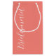 Apresente os presentes da sua dama de noiva com esta pequena bolsa de presente que combina com o seu esquema de cor de festa de casamento de uma cor de coral tendenciosa, juntamente com uma escrita branca e estilizada que lê, "Bridesmaid".
