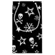 Crânio e crossbones com flocos de neve bonito e estrelas contra um fundo preto.